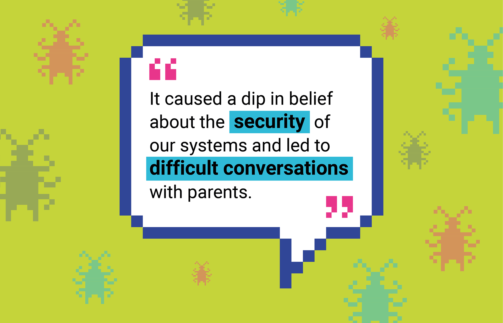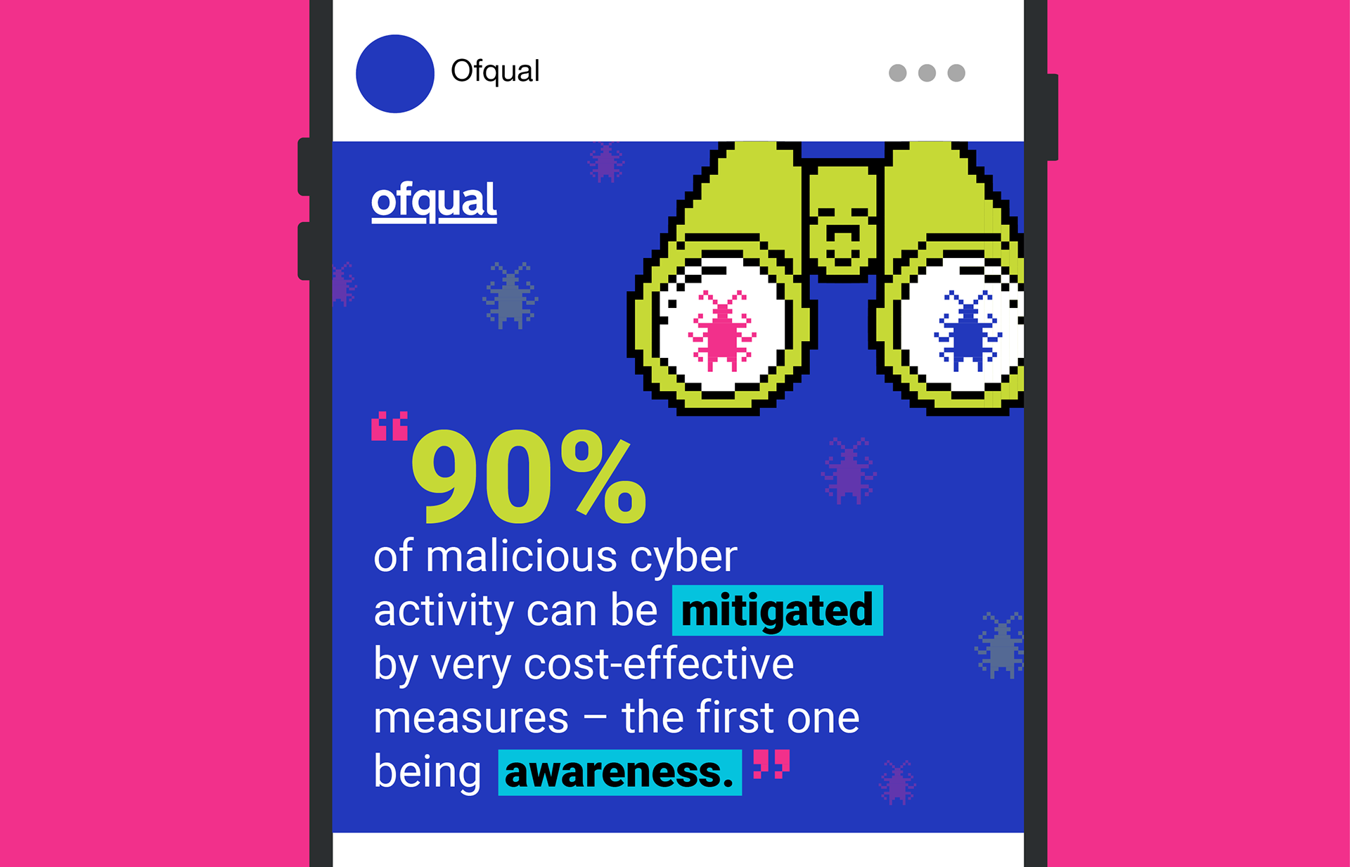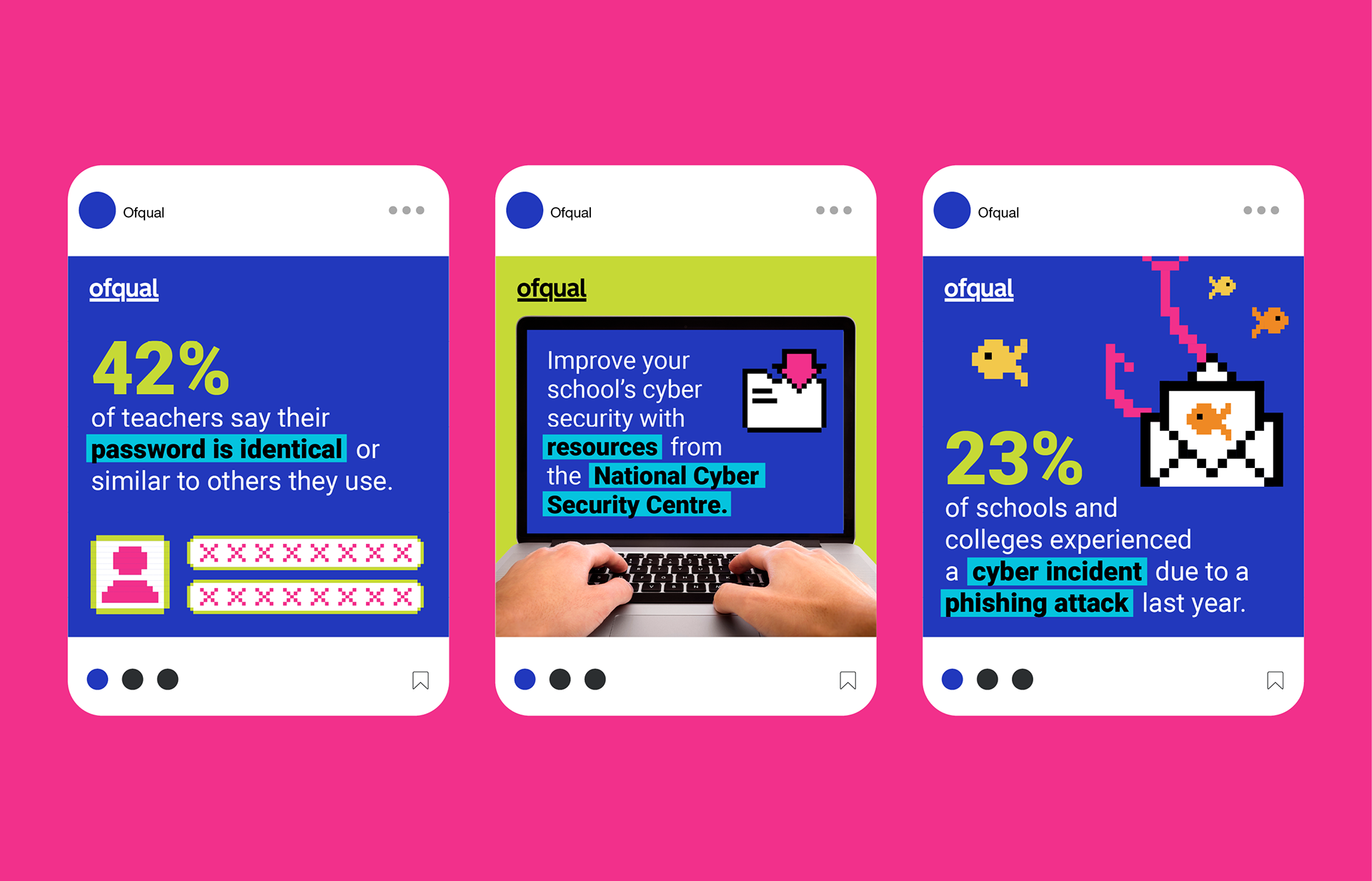 The design takes a collage approach, and mixes point-of-view photography and pixel graphics to remind teachers to be cyber safe when at school. The style is visually